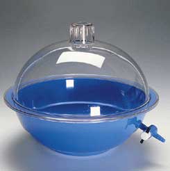 NALGENE* Desiccator without Stopcock^ Impervious to standard desiccants except concentrated acids. Polypropylene base. Transparent polycarbonate cover. No stopcock. Autoclavable. Use standard 230mm desiccator plate. ID: 246mm. OD: 330mm. Height: 262mm.