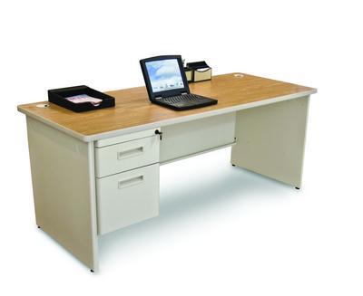The Marvel Pronto 72 Inch^ Single pedestal desk features one hanging pedestal. a textured dark neutral finish which is one of the most durable high quality finishes available. all products are made in the usa and greenguard certified.