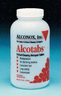 Alcotabs* Tablet Detergent^ 100 tablets for cleaning pipets or test tubes in siphon-type washers. Tablets have the detergency of powdered Alconox* for optimum cleaning. Scrubbing bubbles and free rinsing formula give reliable results and leave no interfering residue. Biodegradable. Noncorrosive.