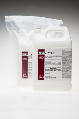 DECON-CYCLE* Detergent^ Low pH phenolic formula is a phosphate-free, dilutable, hospital detergent effective in 10 minutes at 20[degree]C. Prefiltered to 0.2u. Sterile. Double-bagged. Lot-specific Certificates of Analysis and Irradiation and Sterility Report. Size: 3.78L.