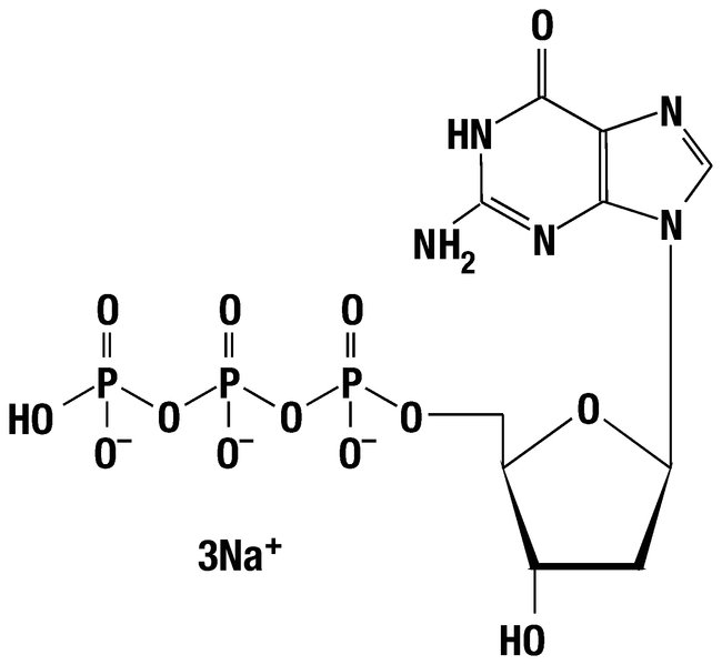 dGTP (2'-deoxyguanosine 5'-triphosphate) is highly stable nucleotide, supplied as 100 mM aqueous solution titrated to pH 7.3-7.5 with NaOH. The nucleotide has greater than 99% purity, is free of nuclease activities, human and E. coli DNA. It is designed for many different molecular biology applications.HighlightsGreater than 99% purity confirmed by HPLCFree of human and E. coli DNAHighly stableApplication tested in:Long range PCR (40 kb)cDNA synthesis and RT-PCRReal-time PCRStandard PCRHigh fidelity PCRThis product(s) resides on a Fisher Scientific GSA or VA contract. If you are viewing this page as a nonregistered user, the price(s) displayed is List Price. To view your GSA or VA contract pricing, log in using your account number, or become a registered user by contacting one of our Customer Service teams. You can also view your contract price by searching for this item(s) on GSA Advantage. To place an order, contact Fisher Scientific Customer Service.