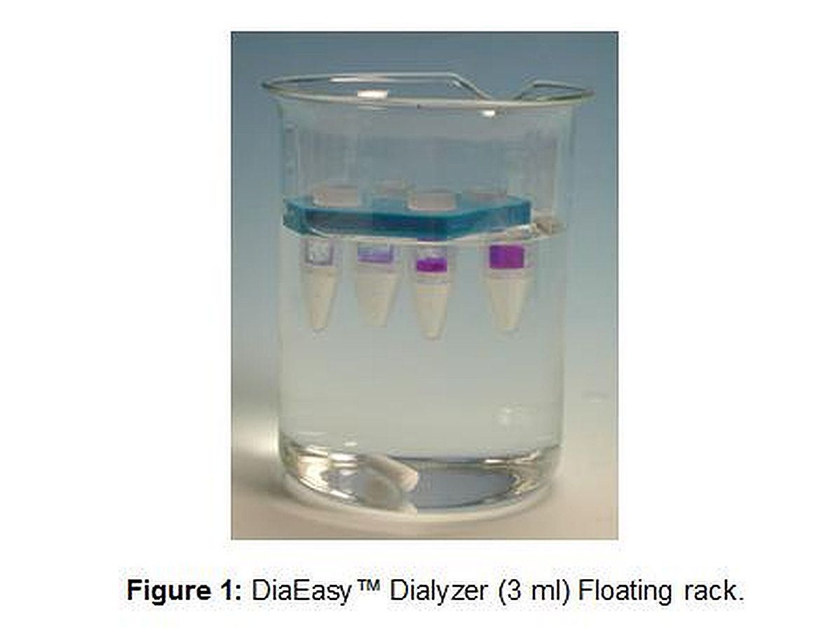 Floating rack^ DiaEasy* Floating rack, Convenient, sturdy floating racks to balance dialysis tubes for buffer exchange during dialysis, designed to support Dialyzer tubes of 3 ml volume, racks can hold upto 4 tubes, Storage: Room tempaerature, Size: 5Pack