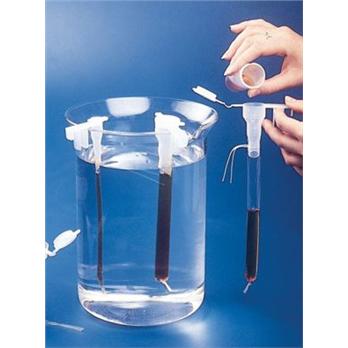 Reduces difficulties in handling narrow dialysis bags. Dialysis tubing is cut to length and knotted at the end. The other end is slipped onto the tube and held with Silicone Rubber Loops, or a rubber band.Three tube steps fit various sizes of dialysis tubingTriple notched universal hanger supports the funnel on the edge of any vesselFeatures a captive cap with writing area. Steam autoclavable at 121°C (250°F)