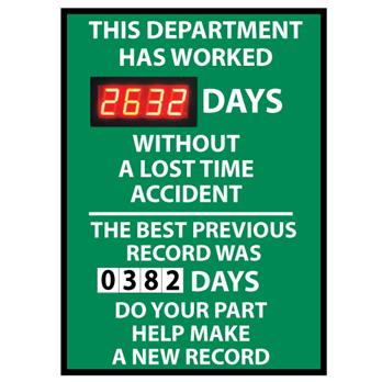 Digital Scoreboard, This Company Has Worked XXX Days Without A Loss Time Accident The Best Previous Record Was (Magenetic 6 X 2.5) Days Do Your Part Help Make A New Record, 28x20, .085 Styrene, Each