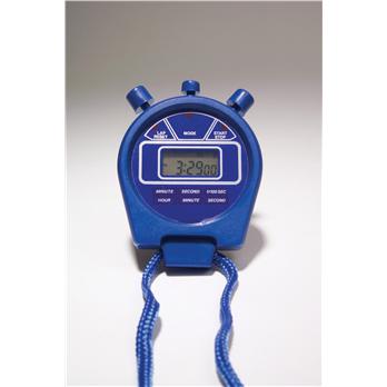 Featured displays of this electronic alarm stopwatch include time (hours-minutes-seconds, with 12 or 24 hour mode option), calendar, 24-hour stopwatch, alarm, hourly chime, 1/100 second chronograph, split time, and total time. It is lightweight, easy to operate, ad comes complete with battery and carrying cord. Shipping weight: 1.5 Oz., dimensions: 5.5 " x 3 " x 1 ".