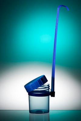 Dipper Detach Handl 90Ml Cs150^ Dipper with removable handle 90ml pp blu 290mm height 43mm diam hinged cap sterile sal 10-3 1/bag 150/case