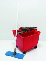 White Truclean Deluxe Disinfection System^ Autoclavable. designed for small area cleaning and disinfecting. complete with 36-liter bucket and casters, waste containment bucket, stainless steel sieves (one for each bucket), stainless steel mop frame and polymer mop handle.