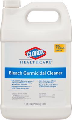 DISPATCH* Cleaner/Disinfectant with Bleach, Refill Bottle^ Detergent bleach solution (5500ppm NaOCl). Kills HIV-1, polio, staph, salmonella, pseudomonas strep, herpes simplex virus in 1 minute; TB in 30 seconds. Meets OSHA, CDC, NCCLS bloodborne pathogen standards. Fungicidal. EPA registered. 3.8L.