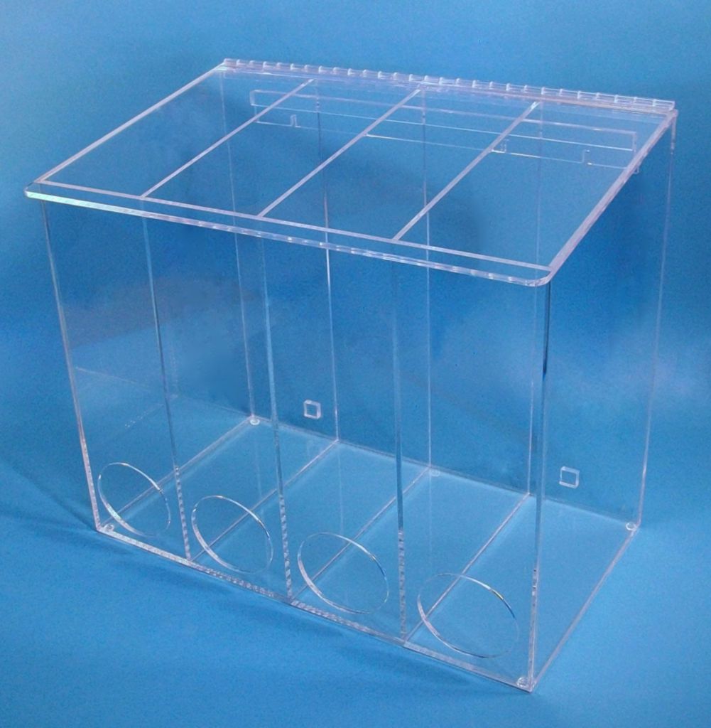 Dispenser-4 Compartments^ With sloping lid and front access openings-1/4In Clear Acrylic