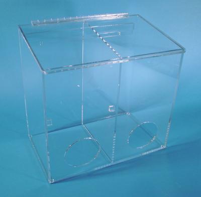 MID-SIZE 2 COMPARTMENT DISPENSER^ WITH FRONT ACCESS. MOUNTS TO WALL OR FREE-STANDING. CLEAR 1/4IN PETG MATERIAL