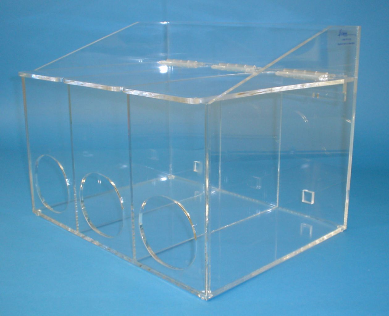 Dispenser With 3 Compartments^ 1/4 in clear petg material-safe with ipa. separate lids-with front access. multiple uses-gloves, bouffants,etc. mounts to wall or free-standing. 1 per case