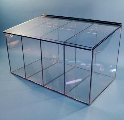 Dispenser With 4 Compartments^ 1/4 in clear petg material-safe with ipa. single lid-no front access. multiple uses-gloves, bouffants, etc. mounts to wall or free-standing. 1 per case