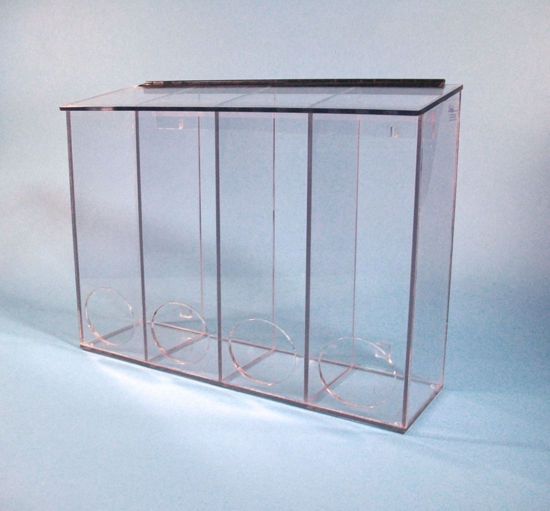 Glove dispenser^ Glove dispensor, 4 compartment with access holes, 22x16x9inches, 1/4inch, Polyethylene terephthalate