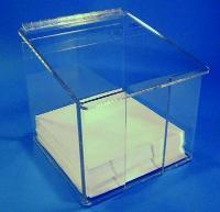Hinged Wiper Dispenser^ Protect 22.9x22.9cm wipers from contamination while keeping them handy. Lid with durable full-length hinge. Wipers accessible through front opening. Clear 6mm acrylic. Anti-slip rubber pads on bottom. Edges flame-treated for smooth finish. Dimensions: 30.5Wx24.1Dx15.2Hcm.
