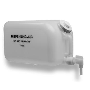 Dispense Directly from 5 Gallon Graduated Jug without Lifting or MovingUse this 20 liter (5 gallon) jug with molded-in gradations (in gallons) to store and dispense common solutions, including janitorial cleaners, deionized / distilled water, or other aqueous liquids.Gasketed and threaded LDPE spigot extends 125mm from jug; features a 35mm long stem for dispensingGraduations located on side and top so fluid volume can be seen regardless of orientationTop opening is 70mm I.D. for fast re-fillingBuilt-in handle (45mm high) provides for easy transportMade from strong and lightweight HDPEDimensions: 25cm (9-7/8 ") sq. x 38cm (15 ") high; shipping weight 1.7kg (3.7lb)