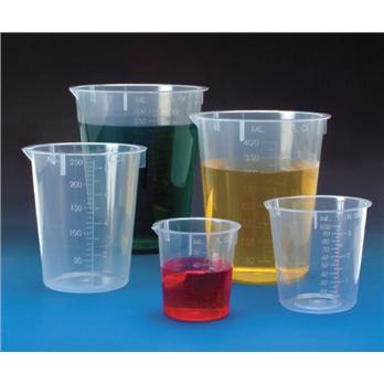 Beakers offer ±5% accuracyAll beakers are transparent for clear content visibility and graduated for easily estimating volumesMolded-in pouring spout and rolled-lip creates a dripless working environmentBeakers are constructed of polypropylene and are resistant to most commonly used laboratory reagents, including a variety of strong acids, bases and organic solvents.