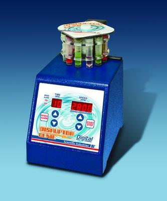 Digital Disruptor Genie cell disruptor^ Disrupts up to 12 microtubes of 1.5ml or 2.0ml size, snap cap or screw cap. Features patented unique agitation, vortexing, and collision actions for cell disruption and sample resuspension.