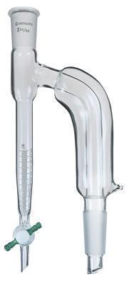 DISTILLING RECEIVER, MOISTURE TEST, BARRETT, VACUUM JACKETED^ fluoropolymer resin Stopcock. 5ml. HxW: 205x75mm. Joint size: 14/20. Similar to CG-1261, but with the uptake tube vacuum jacketed to improve distillation performance.