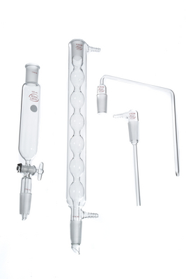 Distillation Apparatus, Sulfites, Monier-Williams, Complete^ Apparatus is used for the determination of sulfites in food and related products. Consists of 3-neck 1000mL boiling flask, 300mm Allihn condenser, cylindrical separatory funnel, right angle inlet adapter, outlet adapter with double bend.