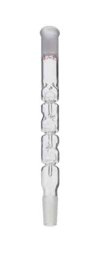 Snyder distillation column with floating ball valves for improved vapor-liquid contact. Manufactured from 33 expansion, low extractable borosilicate glass conforming to USP Type I and ASTM E438, Type I, Class A requirements