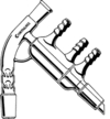 DISTILLING HEAD, SHORT PATH^ Without Vigreux Indentations. WxH: 110x115. Joint size: Lower Inner: 14/20; Top Thermometer Joint: 10/18. Designed for use with small quantities where hold up between the flask and receiver must be kept to a minimum. The thermometer bulb and stem serve as column packing.