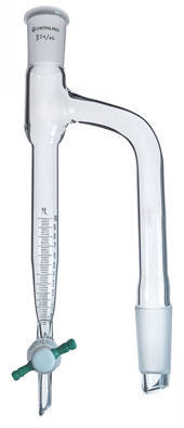 DISTILLING RECEIVER, MOISTURE TEST, BARRETT^ fluoropolymer resin Stopcock. 2ml. HxW: 225x65mm. Joint size: 14/20. Barrett style distilling receiver used to determine the water content in petroleum or bituminous material.