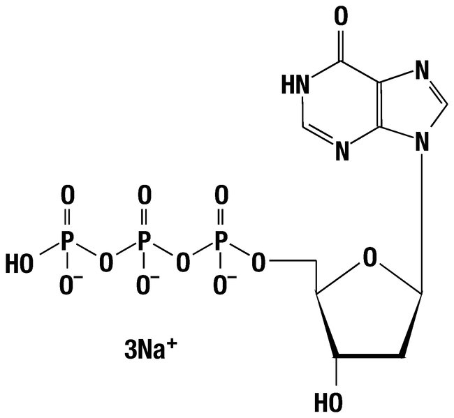 dITP (2'-deoxyinosine 5'-triphosphate) is highly stable nucleotide, supplied as 100 mM aqueous solution titrated to pH 7.3-7.5 with NaOH. The nucleotide has greater than 99% purity, is free of nuclease activities, human and E. coli DNA. It is designed for many different molecular biology applications.Recommended for:For use in all molecular biology applications including PCR and RT-PCR with Taq DNA Polymerase, cDNA synthesis, SNP genotyping and primer extension. Note:dITP is not suitable for PCR with proofreading enzymes or enzyme mixes containing proofreading enzymes.
