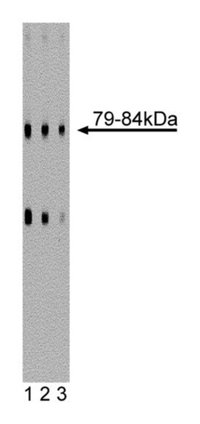 Dynamins, phosphoproteins with intrinsic GTPase activities, play an important role during early endocytosis. The GTPase activity is stimulated in vitro by microtubules, SH3 domain containing-proteins, and Protein Kinase (PKC)- mediated phosphorylation. Although highly related, dynamins are differentially expressed in an organism. For instance, dynamin I is found only in the nervous system, dynamin II is ubiquitously expressed, and dynamin III is located in lung, testis and brain. Due to four alternative splicing products for each of the dynamins, the dynamin family contains at least 12 different members. The Dynamin Like Protein-1 (DLP1) is a new member of the dynamin family of proteins. DLP1 (also known as DVLP) is widely expressed as two alternatively spliced products, each with different tissue expression patterns. The larger product is about 84kDa and reportedly found only in the brain, whereas the 79kDa product is ubiquitously expressed. Unlike dynamins I-III which co-localize with endocytotic vesicles, DLP1 is found aligned with microtubules and with the endoplasmic reticulum, suggesting a secretory function for this novel protein.Host Species: MouseClone: 8Isotype: IgG1Species Reactivity: RatImmunogen: Rat DLP1 aa. 601-722Formula Weight [Chemical]: 79-84kDaImmunofluorescence, Western Blotting