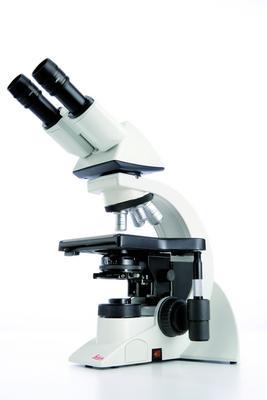 Microscope^ DM1000 with LED light source. Fixed Koehler illumination for simple installation. Ceramic coated stage for continuous use, slide holder for one hand slide exchange, ergonomic telescopic stage controls mounted left or right, Abbe condenser , Hi Plan 4, 10, 20, 40 100x oil objectives.