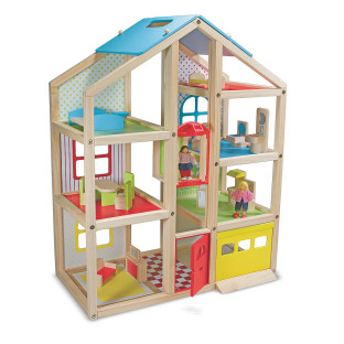 DOLL HOUSE WITH FURNITURE AND PEOPLE