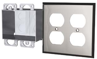 Electrical Pedestal Box^ E2300 Double Gang, Flush Mount.UL,Standard UL514A. For standard/ground fault receptacles.3-wire grounding receptacle(s), rated for 125V, 20A, stainless steel faceplates, grounding screw(s) and 1.9cm (3/4in) mounting shank and locknut.