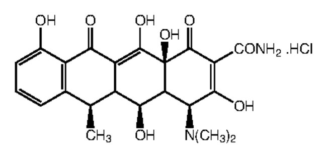 Doxycycline hydrochloride, CAS # 10592-13-9, is the hydrochloride salt form of doxycycline that shows antibacterial and antimalarial activities.
