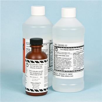 Our Reagent Sets for testing Free and Total Chlorine with Process Chlorine Analyzers. These reagents have comparable chemistries formulated to work with other manufacturers online chlorine analyzers.Each set supplies enough reagent for 30 days of continuous operation. Reagent Sets include:473 ml of Free or Total Chlorine Indicator Solution473 ml of Free or Total Chlorine Buffer Solution24 grams of DPD Indicator Powder.