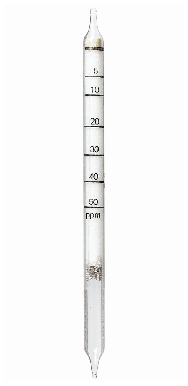 Glass detector tubes are filled with an inert reagent carrier material (silica gel, aluminum oxide, or aluminum silicate) impregnated with an indicating reagent. Reagent produces a colorimetric indication in the presence of a particular gas, vapor, or aerosol. Concentrations can be read directly from the color change on the tube's printed scale. Tubes are hermetically sealed. Most have a two-year shelf life (when stored at room temperature). Available in packs of ten. Note: Some tests require a pretube or comparison tube in addition to the detector tube. These tubes are included in the box of 10, thus reducing the number of detector tubes. The actual number of detector tubes is cited in the ordering charts.Order InfoExtension of measuring range listed is possible for some detector tubes. Call Fisher Scientific™ at 1-800-772-6733 for more information.
