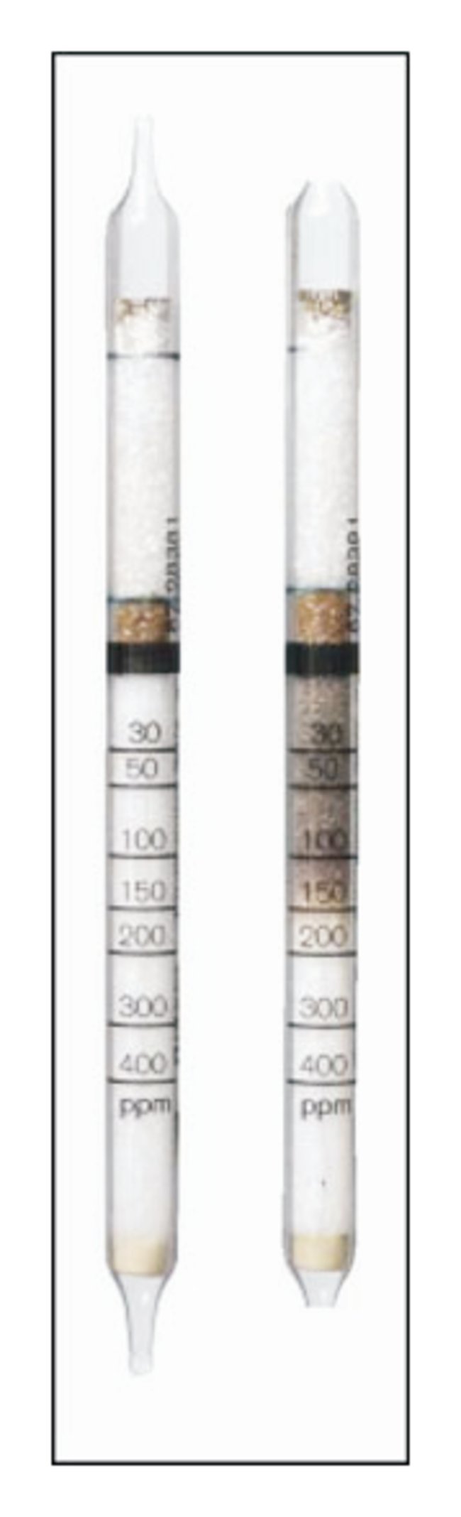 Glass detector tubes are filled with an inert reagent carrier material (silica gel, aluminum oxide, or aluminum silicate) impregnated with an indicating reagent. Reagent produces a colorimetric indication in the presence of a particular gas, vapor, or aerosol. Concentrations can be read directly from the color change on the tube's printed scale. Tubes are hermetically sealed. Most have a two-year shelf life (when stored at room temperature). Available in packs of ten.Note: Some tests require a pretube or comparison tube in addition to the detector tube. These tubes are included in the box of 10, thus reducing the number of detector tubes. The actual number of detector tubes is cited in the ordering charts.Order InfoExtension of measuring range listed is possible for some detector tubes. Call Fisher Scientific™ at 1-800-772-6733 for more information.
