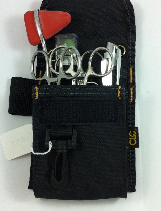 Addison Brown Forceps 4.5in.Dissection Scissor, 5.5in, BandageKelly forceps 5in, CurvedMayo Hager forceps, 5.5in.Dissecting Stitching Scissors, 4.5in.Reflex HammerPen LightThermometerInstruments Holster with waist beltStrong Carrying case