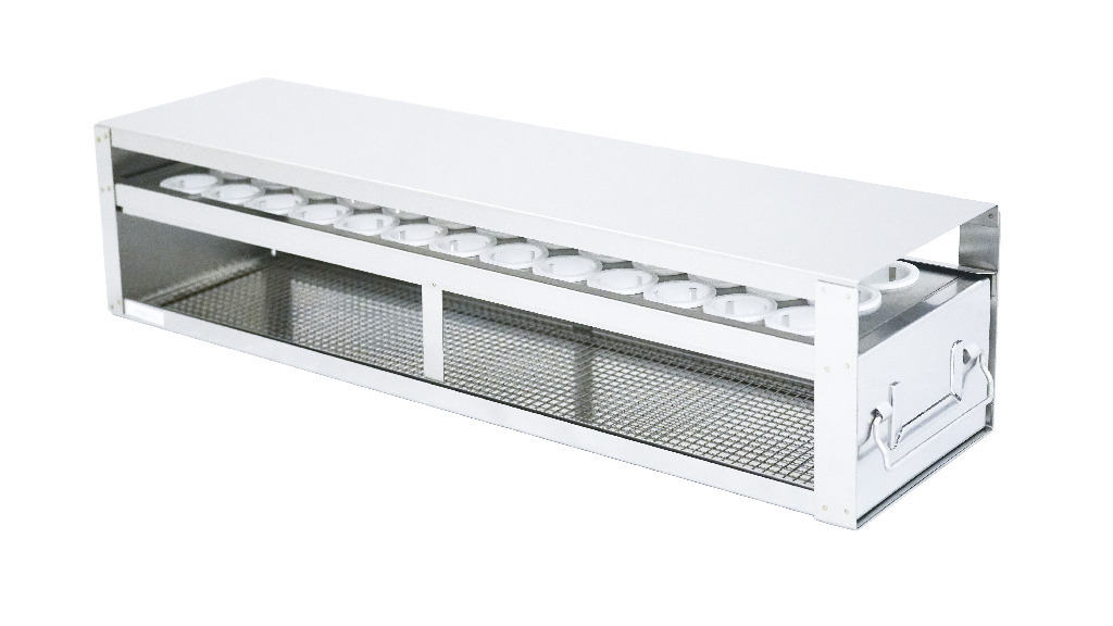 Upright Freezer Drawer Rack 559 x 126 x 140 mm^ Upright Freezer Drawer Rack, Material: Stainless Steel, Box capacity: 39 tubes, For 50ml centrifuge tubes, Outside Dimension: 559 x 126 x 140 mm