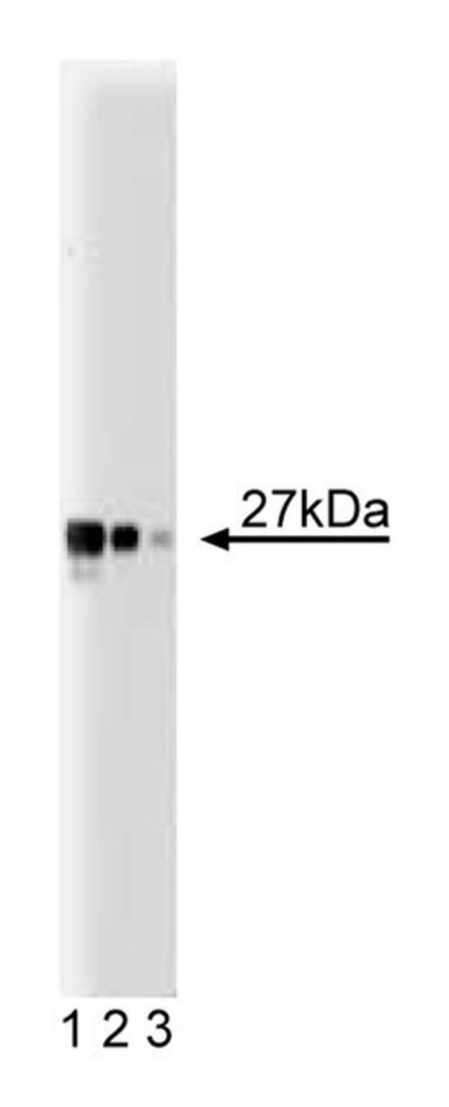 In culture, cell density can have profound effects on gene expression, enzymatic activity, and cell signaling pathways. Using differential screening of cDNAs from low-passage nontumorigenic teratocarcinoma cells versus high passage tumorigenic cells, a protein was identified that is regulated in cell-density dependent manner. This protein, density-regulated protein 1 (drp1), contains putative sites for N-myristoylation and phosphorylation sites for cAMP and/or cGMP-dependent kinase, casein kinase II, and PKC. The expression of drp1 is enriched in high density cultures of both nontumorigenic and tumorigenic cell lines and is widely detected in adult organs, especially skeletal and cardiac muscle. In addition, increased expression of drp1 is not due to growth arrest as a result of serum starvation or TGF-β treatment nor is it a result of factors found in the media of high density cultures. Interestingly, drp1 is expressed highest in skeletal and cardiac muscle where unique cell-cell contacts are involved in muscle cell membrane depolarization and contraction. Thus, drp1 expression may be regulated by signaling pathways related to specific types of cell-cell contacts.Host Species: MouseClone: 22Isotype: IgG2aSpecies Reactivity [for Features Main]: HumanImmunogen: Human Drp1 aa. 19-201Immunofluorescence, Western Blotting