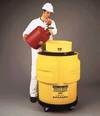Single Drum Unit^ For secondary spill containment of hazardous materials. Blow-molded high-density polyethylene unit with 321L spill capacity suitable for 208L drums or smaller. Use as collection or dispensing center. Chemically-resistant to most materials. Forkliftable. 78ODx83Hcm. 14kg.