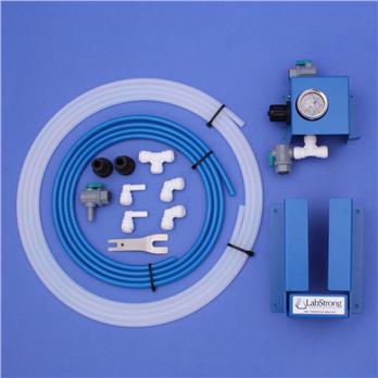 AY0017-1 This kit accommodates varying inlet water contaminants. When used, the kit reduces the frequency of cleaning LabStrong Fi-Streem Water Stills and other distillation systems. The kit also provides extended cartridge service life for point of use deionization (DI) water systems, which significantly reduces operation costs. The LabStrong AY0017-1 Wall Mount Kit includes a powder coating painted aluminum wall mount bracket. The aluminum wall mount bracket features a large vision slot for examining resin color change. Four screw mount holes on the bracket allow for secure mounting to a wall. The LabStrong AY0017-1 Wall Mount Kit also includes a regulator/gauge assembly. This assembly protects against excessive water pressure and provides for more consistent flow rates. The pressure regulator is factory preset to 15 psi. The pressure regulator can withstand an inlet pressure of 100 psig. The post regulator pressure gauge is liquid filled allowing for increased life and accurate readings with pulsating pressure (i.e. diaphragm pumps). Four screw mount holes on the pressure regulator assembly allow for secure mounting to a wall. A flow regulation valve, various plumbing fittings and tubing (15' piece of clear tubing and 10' piece of blue tubing) are also included with the kit. These items support easy integration for new installations as well as upgrades to existing systems. The kit is to be used with LabStrong straight nipple cartridges.AY0017-2 This kit accommodates varying inlet water contaminants. When used, the kit reduces the frequency of cleaning LabStrong Fi-Streem Water Stills and other distillation systems. The kit also provides extended cartridge service life for point of use deionization (DI) water systems, which significantly reduces operation costs. The LabStrong AY0017-2 Dual Holder Kit includes two powder coating painted aluminum wall mount brackets. The aluminum wall mount bracket features a large vision slot for examining resin color change. Four screw mount holes on the bracket allow for secure mounting to a wall. The LabStrong AY0017-2 Dual Holder Kit also includes a regulator/gauge assembly. This assembly protects against excessive water pressure and provides for more consistent flow rates. The pressure regulator is factory preset to 15 psi. The pressure regulator can withstand an inlet pressure of 100 psig. The post regulator pressure gauge is liquid filled allowing for increased life and accurate readings with pulsating pressure (i.e. diaphragm pumps). Four screw mount holes on the pressure regulator assembly allow for secure mounting to a wall. A flow regulation valve, various plumbing fittings and tubing (15' piece of clear tubing, 10' piece of blue tubing, and 4' piece of blue tubing) support easy integration for new installations as well as upgrades to existing systems. The kit is to be used with LabStrong straight nipple cartridges.AY0017-3 This kit can be added onto the LabStrong AY0017-1 Wall Mount Kit or AY0017-2 Dual Holder Kit at anytime, including after initial installation of AY0017-1 or AY0017-2. The AY0017-3 can also be used by itself to hold a hose nipple or straight nipple water purification cartridge. The LabStrong AY0017-3 Add on Holder Kit accommodates varying inlet water contaminants. When used, the kit reduces the frequency of cleaning LabStrong Fi-Streem Water Stills and other distillation systems. The kit also provides extended cartridge service life for point of use deionization (DI) water systems, which significantly reduces operation costs.The easy to install LabStrong AY0017-3 Add on Holder Kit includes a wall mount bracket, various plumbing fittings, and a 4' piece of blue tubing. The powder coating painted aluminum wall mount holding bracket can be used with all LabStrong hose nipple cartridges and straight nipple cartridges. The wall mount holding bracket features a vision slot for examining resin color change. Four screw mount holes on the bracket allow for secure mounting to a wall.