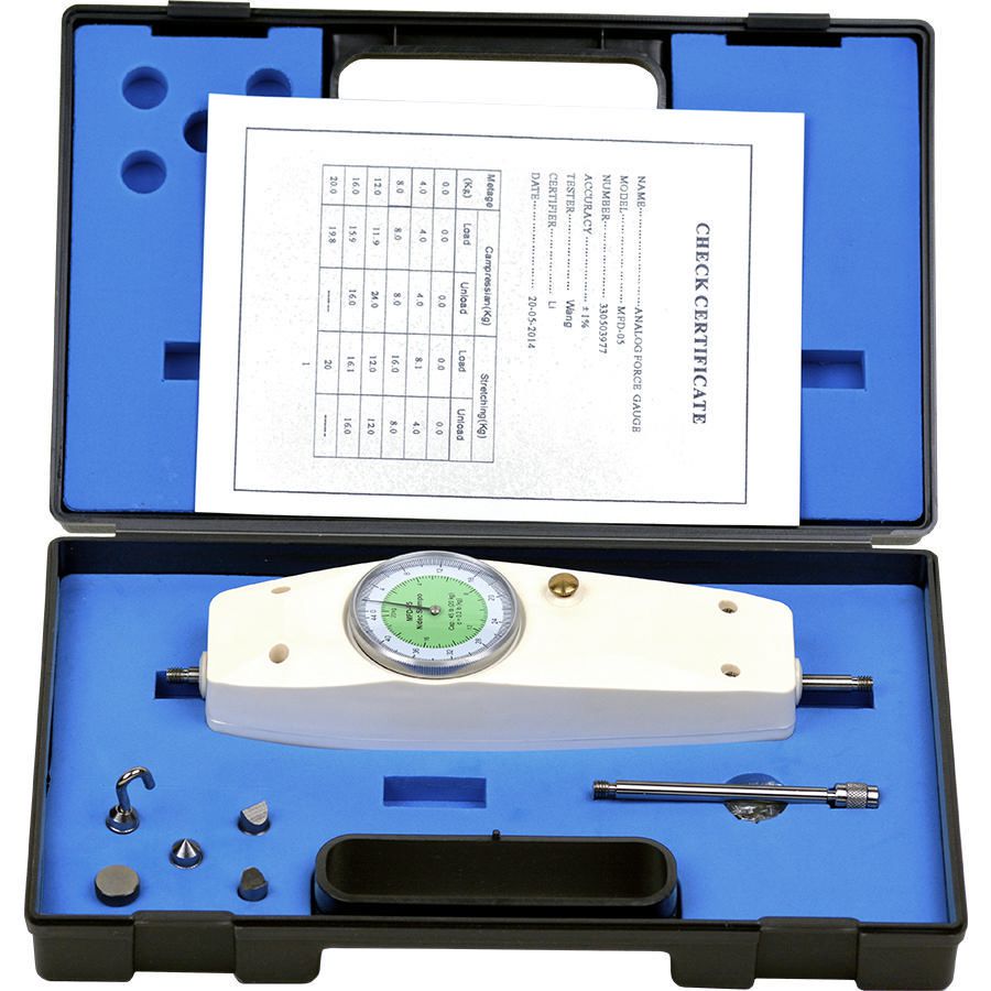 Mechanical force gauge 20kg^ Mechanical force gauge, Dual scale, Economical, Excellent for push/pull force testing in manufacturing, material testing, maintenance, Inspection application, Ergonomic design, Rear threaded insert, Quick response for instantaneous analysis, Resolution: 0.2lb, Size: 20kg