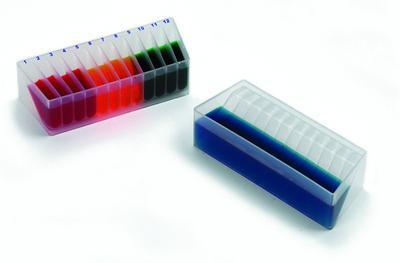 Dual-Function Solution Basin^ Dual-Function Solution Basin, 12-Channel, Polypropylene solution basin/reagent reservoir has a standard 50 mL basin on one side and 12 individual 5 mL basins on the other side