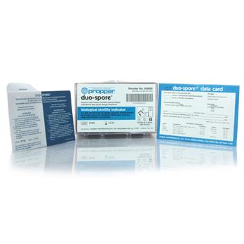 For monitoring the efficacy of steam, ethylene oxide gas, chemical vapor and dry heat sterilization processes used in healthcare facilities, body modification parlors and industry. Biological monitoring is recommended weekly, but preferably daily, and with every load containing implants. Duo-Spore® Biological Indicator Strips are certified for Species, Population, D-value, Z-value (as appropriate) and Expiry. Our culture media is manufactured in accordance with Association for the Advancement of Medical Instrumentation (AAMI) ST-79 recommendations and U.S. Pharmacopeia (USP) Guidelines. Duo-Spore® Biological Indicator Strips Duo-Spore® Biological Indicator Strips are prepared from suspensions of Geobacillus stearothermophilus and Bacillus atrophaeus and encased in a peel-open glassine pouch. The glassine pouch allows for exposure of the enclosed strip to the sterilant, without exposure to ambient air, moisture and potential contaminants, allowing for worry-free transfer to culture media after cycle completion. Duo-Spore® Culture Media Propper manufactures ready-to-use Tryptic Soy Broth (TSB) culture media which is specially formulated for use with biological indicators (BIs). In-house studies show that our media features a higher spore recovery rate, providing for a more dependable test.Duo-Spore® with Mail-In Culture Service A convenient way to monitor sterilizers in Physician, Dental and Veterinary Offices, as well as Tattoo and Body Modification Parlors: just expose the test strips in your sterilizer and mail them in the included prepaid envelope. Your results will be mailed upon completion of the incubation period and kept on file in our laboratory. Positive results are reported immediately.