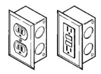 Electrical Receptacle Kit for Basic* Hoods^ GFI receptacle. Includes junction box, receptacle cover plate, and installation instructions. Electrical wiring not included. 115V, 15A.
