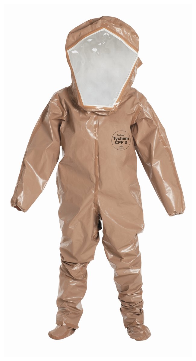 Tychem CPF 3 Encapsulated Level B Suits, Zipper and double storm flap with hook-and-loop closure, Pack of 6