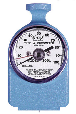 ASTM Type D Durometer^ Measure hardness of hard rubber, plastics, Formica, Plexiglas*, soft metals, nylon, polyurethane and other similar materials. Meets or exceeds current ASTM D2240 specifications. Accuracy of /-1 point. Maximum hold hand stops at the peak reading. Carrying case included.