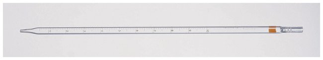 Just fill pipet to desired volume and read—no time-consuming draining as with conventional pipets.White graduations stand out against background of dark dye; easier to see and read than conventional amber markingsInverse scale—volume graduations start with 0 at tipColor coded for quick, accurate identificationCatalog number, capacity, and accuracy marked on each pipetTough borosilicate glass; Tuf-Temp™-treated to reduce chippingComplianceCalibrated “To Deliver/Blow Out”.