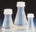 Translucent, wide-mouth, conical flasks with polypropylene screw closures. Autoclavable with excellent chemical resistance. NOTE: Before autoclaving, set closure on top of flask without engaging the threads to prevent accidental implosion. Flasks can also take stoppers.