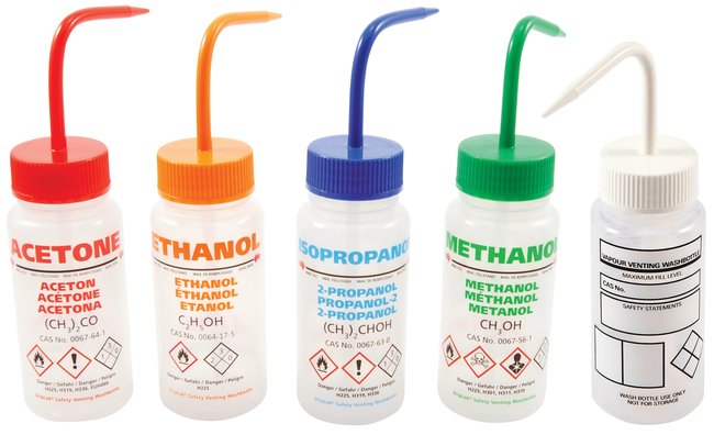 Multi-lingual Wide Mouth LDPE 250mL Wash Bottles, Pack of 4