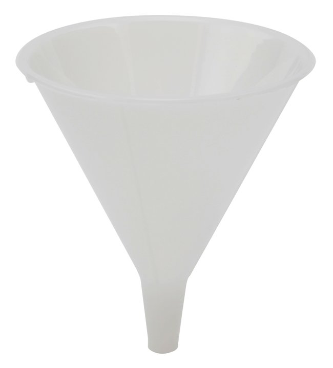 Made from polypropylene or high density polyethyleneGood for pouring thick liquidsMaximum funnel dia.: 6.38 in. (16.2cm) with very large throat opening